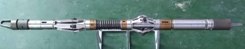 扶正导向器连接在仪器尾端,能让仪器串尾端处在井筒中央,防止台阶阻,在大肚子垮塌井段,如果扶正导向器的导向胶锥阻在台阶上,则阻力会压缩扶正导向器使加长支臂张开,支撑仪器尾端脱出台阶导向井筒中央,解除遇阻状态,顺利下井。